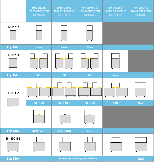- Ice Bins and Top Kit Sold Separately.